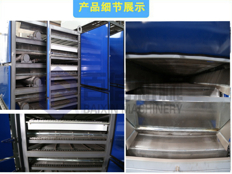 3.玫瑰花烘干機烘箱采用雙向門,以利于檢查,拆卸機件,開啟方便,清料容易。